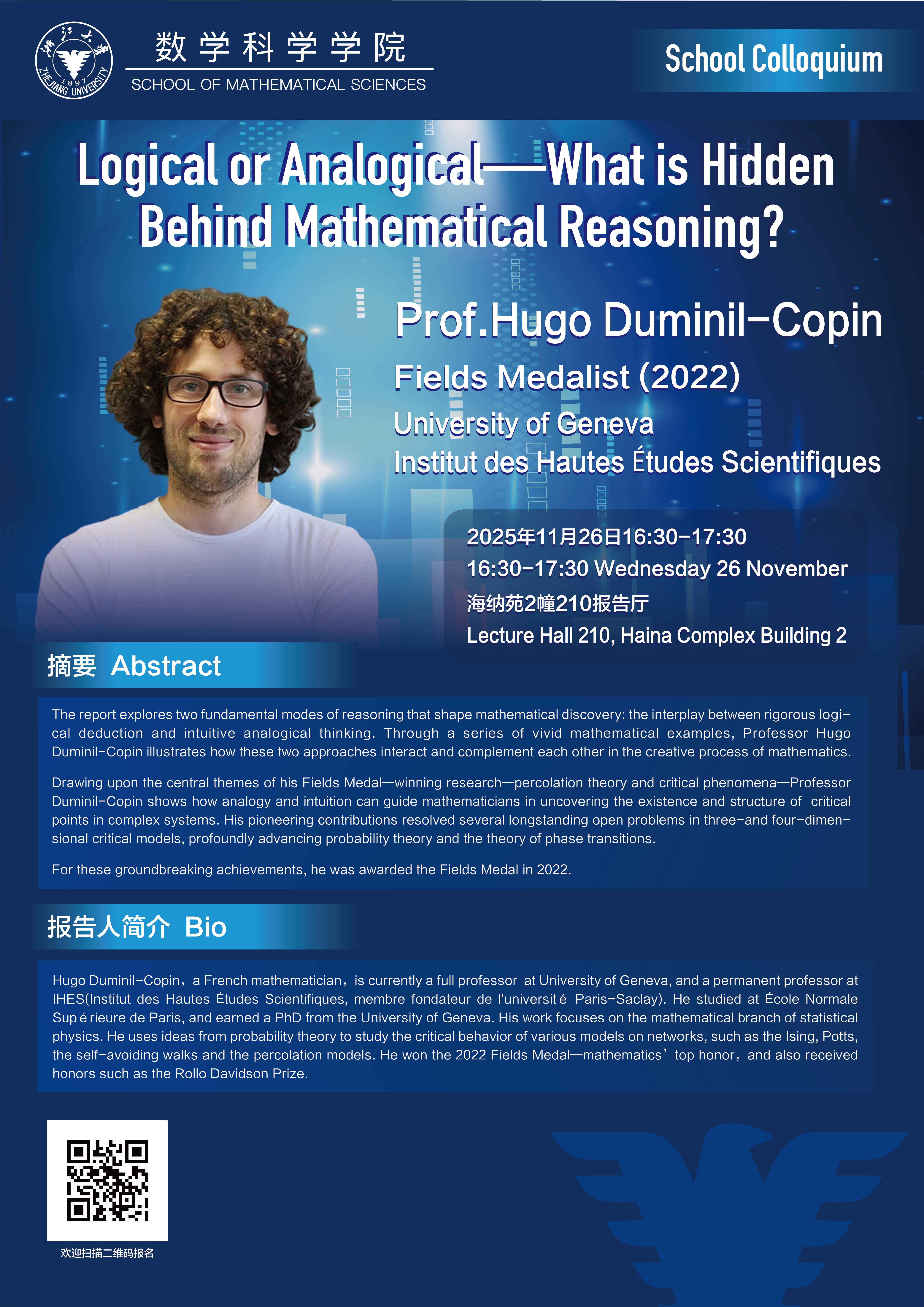 学术科研 学术团队 学术活动 学术会议 学术报告 讨论班 School Colloquium 信息公告 文件汇编 School Colloquium 首页 > School Colloquium 来源:数学科学学院 发布时间:2025-11-21 161