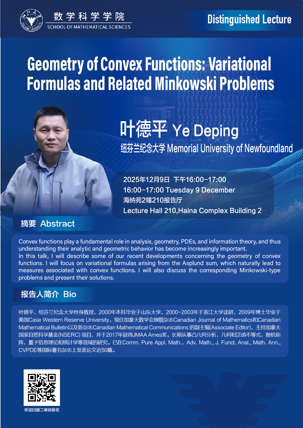 学术科研 学术团队 学术活动 学术会议 学术报告 讨论班 School Colloquium 信息公告 文件汇编 School Colloquium 首页 > Distinguished Lecture 来源:数学科学学院 发布时间:2025-12-03 170