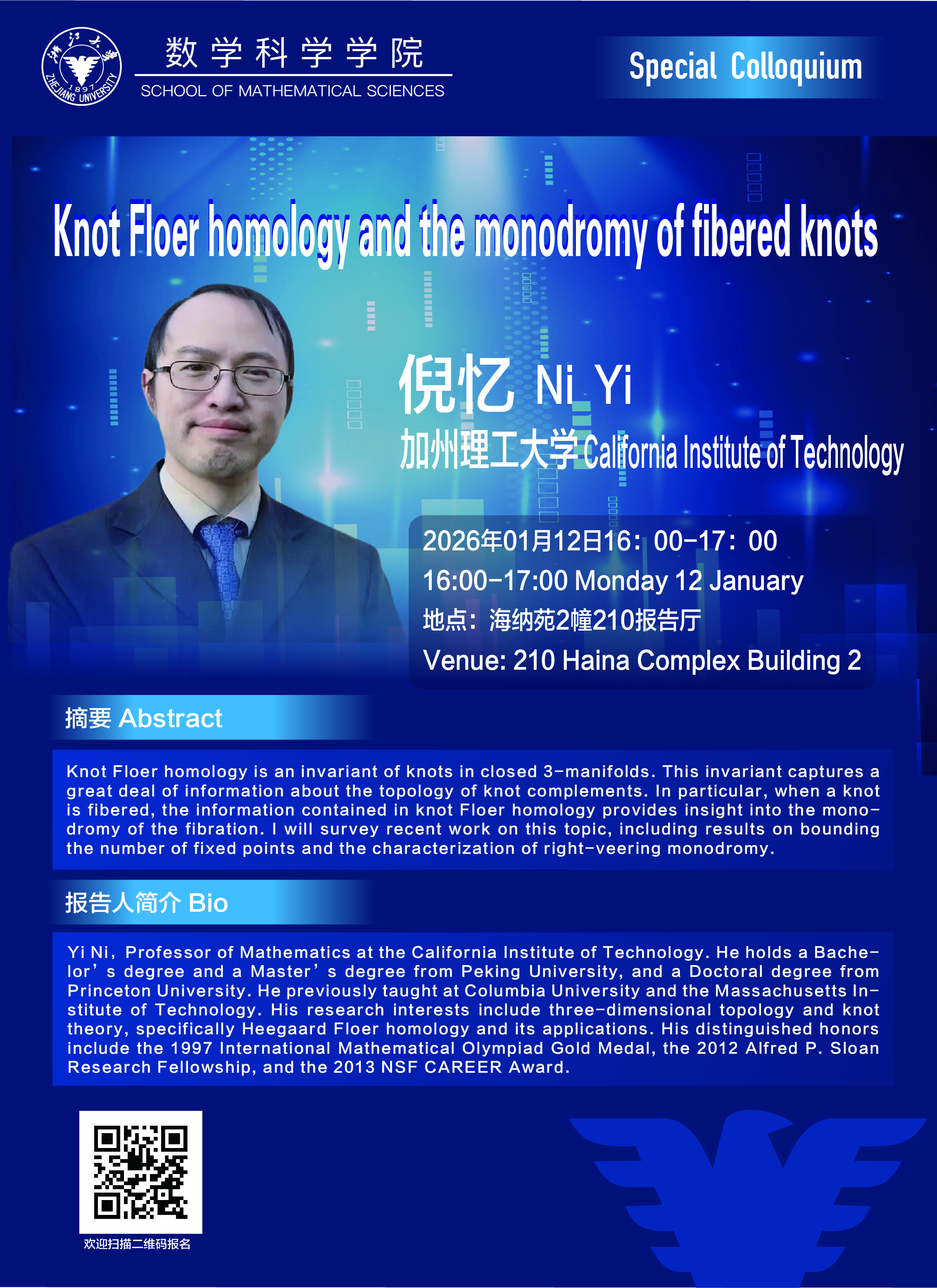 学术科研 学术团队 学术活动 学术会议 学术报告 讨论班 School Colloquium 信息公告 文件汇编 School Colloquium 首页 > Special Colloquium 来源:数学科学学院 发布时间:2026-01-06 161